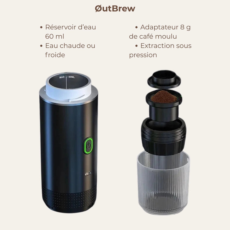 Et non ! ØutBrew est pensé pour la simplicité. Un bouton unique, un processus intuitif. Préparez un espresso parfait en quelques gestes, même au sommet d'une montagne.